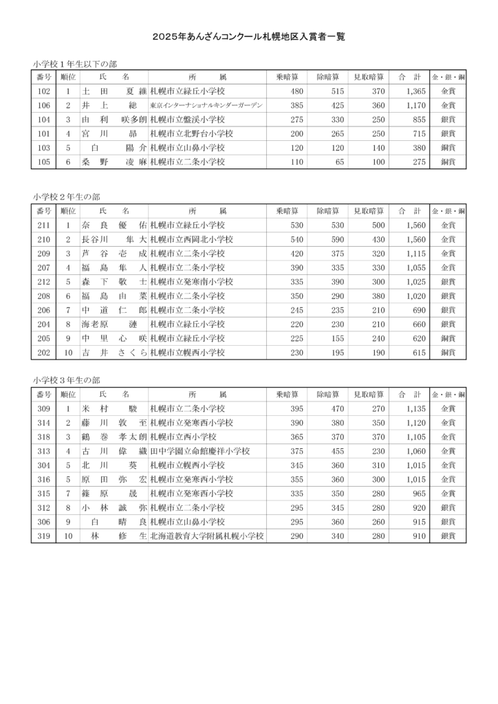 2025年全国あんざんコンクール成績発表